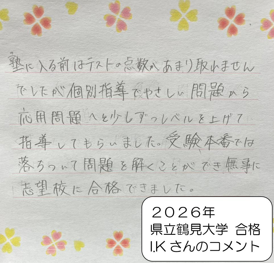 【合格発表について】高校、大学の合格の声が届き始めました。随時「合格者たちの声」のページを更新していきます。 |