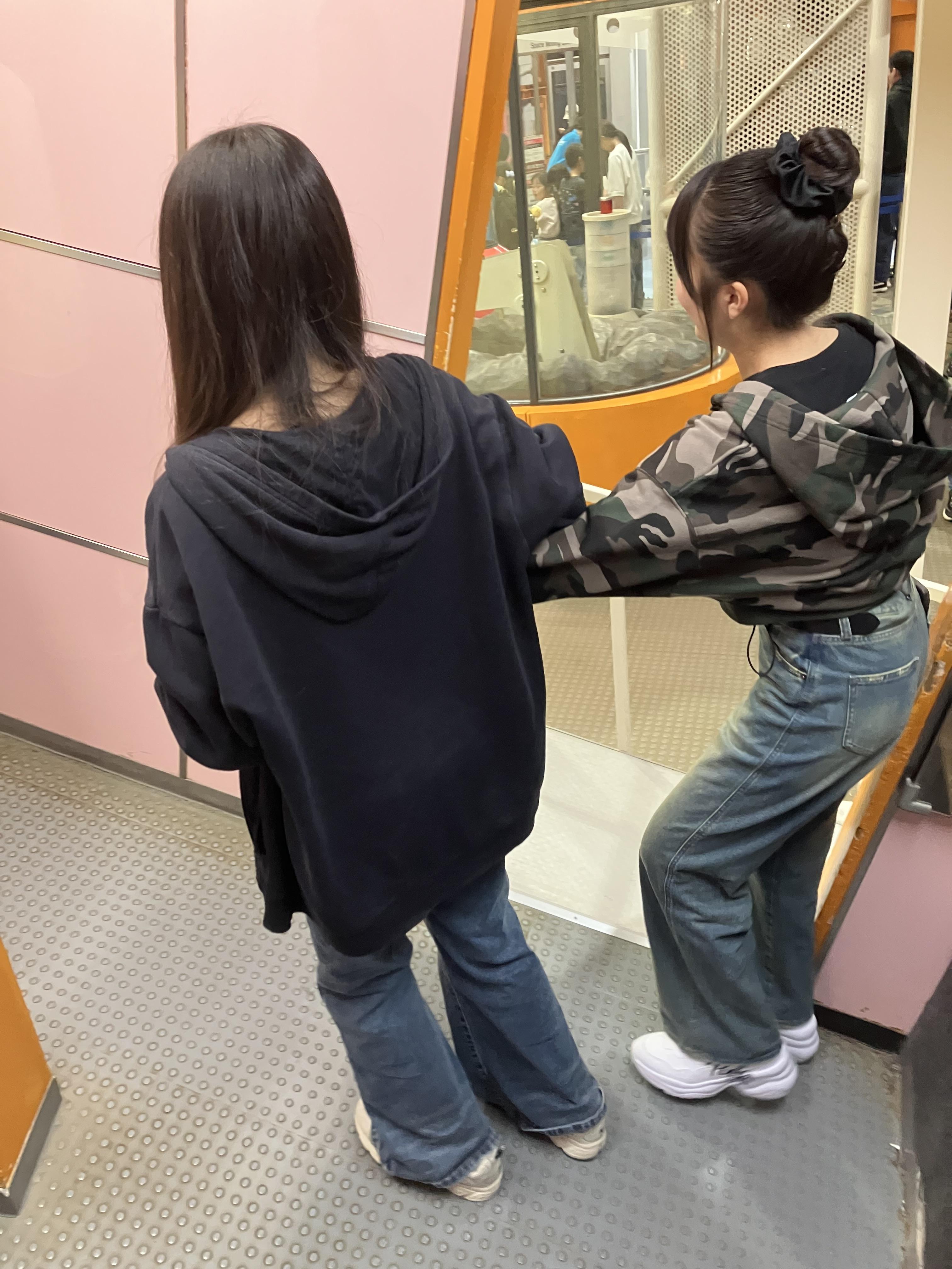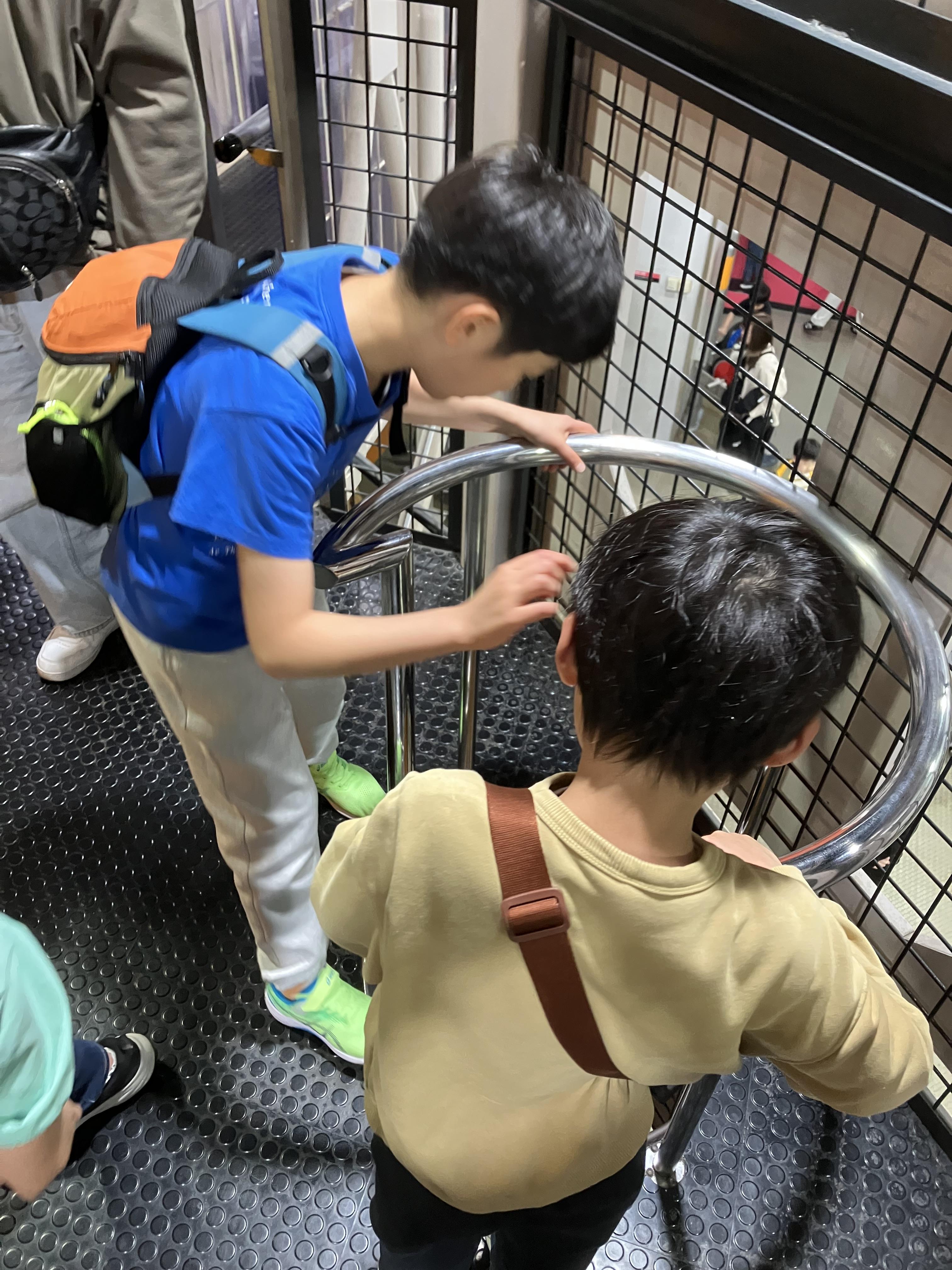 3Fの宇宙トレーニング室では、月面ジャンプを体験したり、重量錯覚を起こす斜めの部屋に入ったりしました。B2のあそびの広場ではスライム作りを行う生徒もいました。